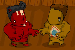怪物格斗 小游戏说明:一个超威猛的野蛮人,凭借一身天生的神力,横冲直撞,无所畏惧。 操作方法:点击A键进入游戏,方向键←→控制移动,A键控制攻击,S键控制跳跃,D键控制拣东西。杀死所有的敌人后按P键查看所有的动作组合。