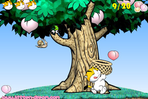 奇童梦乐-接桃子小游戏介绍:《接桃子》很好玩哦,按左键右键控制奇童行走,避开危险,接到足够食物就可以过关了。一共有10关,小道具可以让奇童跑得更快和变得更大,奇童越大分数就越高了。