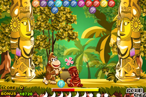 金刚丛林球2小游戏介绍:金刚丛林球第2部,金刚现在处于丛林深处。然而,丛林是充满了陷阱和难题的地方。金刚将解决每一个难题为了进一步进入丛林。在此期间,他将收集他最喜欢水果香蕉增强他的实力。来帮助它获得更多的香蕉吧!只需要把三个或者以上的相同颜色的彩球放在一起即可消除!
