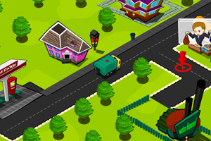 清洁绿色城市小游戏介绍:城市里每家每户每天都会制造很多的垃圾,现在在清洁公司工作的你被派出来开着垃圾回收车来收每一家的垃圾,当每一户上有人提着垃圾出现时,你就要及时的过去收取!加油哦!