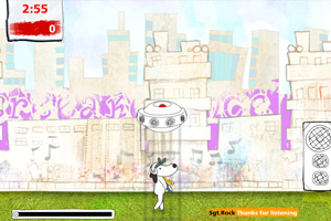 这是个外星人通过说唱音乐对可爱小狗进行攻击的游戏,你会通过移动放出各种音符,看看这些说唱音乐能否诱惑到可爱小狗吧。