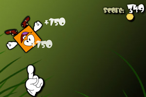 食指立定小游戏介绍:我们要拖动里边的小人吃到金币得分,千万别让它掉下去哦!