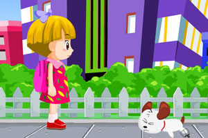 上学路上小游戏介绍:可爱的小女孩上学路上遇到了一些麻烦,比如看到小狗被夹子夹住了,想办法帮小狗脱困,还有看到一只凶狗拦路,想办法赶走凶狗,要好好动脑筋咯。