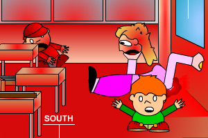 逃学威龙杰克版小游戏介绍:老师正在上边讲课,不幸被一拿武器的人打死,你要逃跑,想办法逃出去!