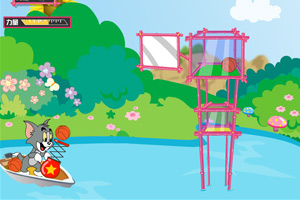 汤姆猫海岸篮球小游戏介绍:汤姆参加了海岸投篮比赛,这需要汤姆坐在摇晃的船上,将篮球投进玻璃球框内。你能帮助汤姆获得第一名吗?快来试试看。