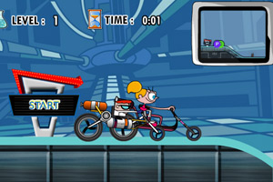 德克斯特赛车小游戏介绍:德克斯特是一个年仅七岁的天才儿童,无所不知。他最自豪的是拥有一个秘密的地下实验室。现在他要和他的姐姐蒂蒂展开一场竞速赛车!你来帮助他拿到第一名吧!
