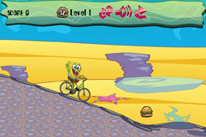 海绵宝宝汉堡自行车小游戏介绍:海绵宝宝骑上了一辆有趣的自行车,看看你能让他吃到多少汉堡呢。