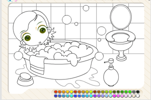 浴室填颜色小游戏介绍:一个大眼的小MM正在浴室泡澡,有好多泡沫呢~