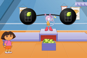 朵拉练举重小游戏介绍:多拉和伙伴们一起举重,两边的重量要一样哦,方块的位置要放对称,不然朵拉的小伙伴是举不起来的哦。成功举重后会出现小星星奖励,记得要捡起小星星哦。看看朵拉的小伙伴能举多重。