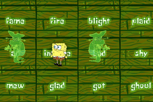 海绵宝宝幽灵单词小游戏介绍:这个海绵宝宝的游戏,有点难,对于那些不会英语的小朋友来说是一个挑战,但是对于喜欢英语的小朋友来说将是一种莫大的乐趣,而且有益于我们的学习呢!游戏中会随机出一个英文单词,海绵宝宝的任务就是找跟这个单词后半部发音相同的单词,例如:“came”,然后我们可以找game,blame等等。选对了,我们将会获得幽灵的金币!