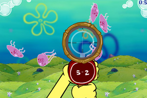 海绵宝宝在海底开始了算术大战,使用神奇的算术枪,只要算得正确就会消灭一个水母,爱学习的小盆友们,快来试试吧!