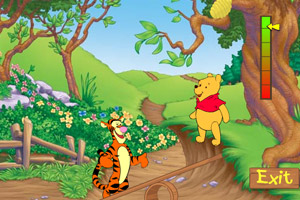 小熊维尼跷跷板小游戏介绍:小熊维尼想吃树上的蜂蜜,于是它找来了好朋友跳跳虎。它们要利用跷跷板的弹力使维尼跳到树上摘下蜂窝,吃到蜂蜜。