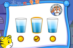 巧虎水神考验小游戏介绍:巧虎今天买了自己最喜欢的一大包甜甜圈,在回家的路上遇到了嘴馋的水神,可爱的水神要问巧虎问题,如果你不帮助巧虎,他的甜甜圈会被水神吃掉哦,游戏中水神会教小朋友如何比较不同形状的玻璃杯装水的多少,宝宝下次遇到这种问题,肯定难不倒了。