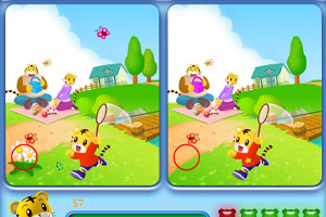 巧虎找茬小游戏介绍:巧虎迷们,很开心又跟你们见面啦!这次让我们一起来玩“大家来找茬”游戏吧!这个游戏一共有五关,每关都有两幅相似的图画,点击鼠标找出5处不同的地方就能通过关啦!记住,只有一分钟时间哦!