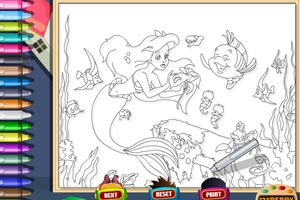 这是一款以小美人鱼卡通为题材的拼图游戏,小美人鱼生活在深海里,鱼儿是她的好朋友。来帮他们填上漂亮的颜色吧!
