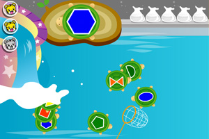 小朋友,这里有好玩的捞乌龟游戏,快来玩!找到相同形状的乌龟就可以捞起来了,练习下宝宝的形状识别能力。