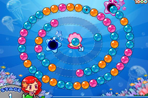 可爱人鱼泡泡龙小游戏介绍:蔚蓝色的深海中,可爱的美人鱼正在努力地收集彩色珍珠,快来帮帮她吧!