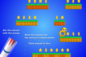 大炮笑脸小游戏介绍:每一块阶梯上都有很多的星星,现在需要很好的控制大炮使用最少的次数把星星都吃掉!小球会按照出现的白色虚线作为轨迹行动哦!你可以吧?来用你的智慧挑战一下吧!