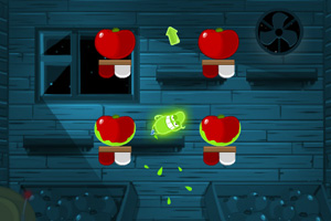 西红柿变绿行动小游戏介绍:这是两家卖西红柿店之间的故事,在一次西红柿大赛上,博士的西红柿败给了竞争对手的西红柿,博士于是发明了一个绿色小怪,它可以将西红柿变成绿色!博士夜晚偷偷到了对手的西红柿店~~开始了西红柿变绿行动~快来看看西红柿是怎么变绿色的吧!!