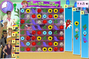 美女花店小游戏介绍:一款非常有意思的花店经营游戏,你的经营方法换成了大家常见的对对碰,消去框框里的鲜花,你才能得到相应的鲜花,按照客人的要求美丽的花束~~