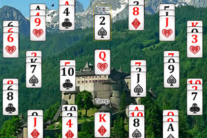 城堡扑克接龙小游戏介绍:背景是一座美丽的城堡,现在由你来按照正确的顺序把这些纸牌排列出来吧!