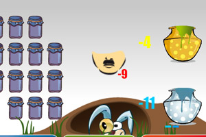 和一只疯狂的兔子比赛,记住每个罐子后面的数字,看看到最后谁点出来的数字的总和最大!那就要靠自己的记忆力了哦!