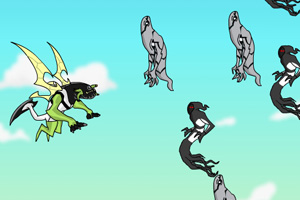 少年骇客大变身小游戏介绍:博士这次又研究了一种新的细胞融合术,他能让少年骇客变身为空中飞狼,战斗即将开打,消灭所有空中的怪物,保卫我们的地球吧!
