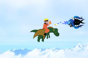 在巨龟岛和八尾大叔修炼那段时间,鸣人和岛上的很多动物成为了好朋友,有一天小绿龙来向鸣人求助,原来绿龙的家乡受到了恶龙怪物的攻击,鸣人决定帮助小绿龙保护家乡,骑着小绿龙用鸣人的忍术击败恶龙吧!