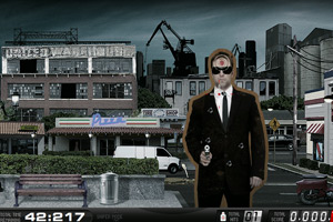 这是个射击的游戏,你的任务是射击那些戴墨镜的坏人,中间也出现一些妇女和孩子这些人是不能开枪去射击的,要记住在最短的时间内解决敌人。
