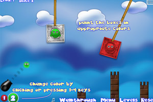 又一款好玩的大炮游戏。和《彩色的世界》差不多,通过大炮射出的物理原理利用相同颜色的小球去射击相应的盒子,使盒子染上正确的颜色即可过关。