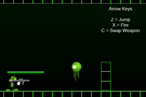 方向键控制移动,Z键跳跃,X键射击,C键换武器。