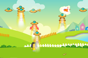 阻止外星人抓小孩小游戏介绍:外星人的飞船突然大量的出现在学校上空,原来他们是来抓同学们的·~~不好,得赶紧阻止外星人飞船~~将所有UFO击落保护同学们吧!!