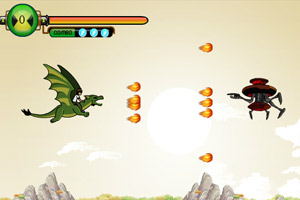 少年骇客火龙大战小游戏介绍:少年骇客骑着他的火龙开始对抗外星人的侵袭了!需要很好的控制火龙的飞行,用火球把这些外星机械生物统统消灭吧!