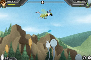 少年骇客大战植物小游戏。少年骇客骑龙飞入变异植物森林,森林中的植物全都是食人植物,并且可以发射种子炮弹。少年骇客能否逃出这个怪异森林呢?游戏中你要躲避各种植物发射的子弹,并且不要碰这些植物。鼠标左键发射武器进行对抗。这个游戏挺难的,你要挺住。