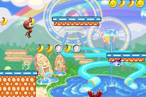 猴子摘香蕉2中文版小游戏介绍:猴子摘香蕉2中文版来啦!小猴子来到了游乐场玩,发现这里有好多好多的香蕉,小猴子最喜欢吃香蕉啦,于是它不顾危险的去拿,吃到不同道具有不同的效果哦,每一关开始前都会显示任务目标,要注意查看。