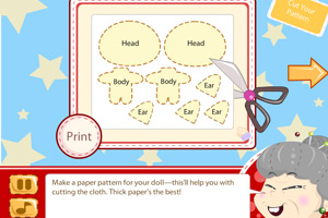 老奶奶的小玩偶店有了新款——可爱小猫咪玩偶,你来帮奶奶完成一些工作任务,按虚线剪好布料,然后再按提示缝制出可爱的猫咪玩偶吧。提示:游戏语言要选择英文。