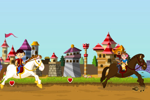 骑士救公主小游戏介绍:黑蒙面骑士抓走了心爱的公主,白马骑士追了上去,能否救出公主,就看你的了~~点击公主落下的红心,但是要小心不要在黑骑士回头的时候点,否则就前功尽弃了。