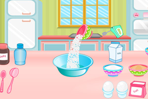 游戏中使用鼠标操作,根据提示拖动食材制作甜点。