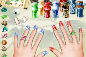 美甲中国风小游戏介绍:素胚勾勒出青花笔锋浓转淡,美丽的青花瓷,中国风的美甲小游戏。快来玩玩吧!