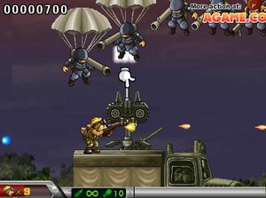 合金弹头-军事救援修改版小游戏介绍:合金弹头-军事救援修改版,炸弹无限丢,生命无限~ 超级经典的合金弹头小游戏,这次我们勇敢的特种兵要用高射炮给敌人一个下马威,之后继续在平原作战,火爆的射击场面,枪林弹雨中完成你所接受的任务,来参加一场精彩的军事救援赛吧!