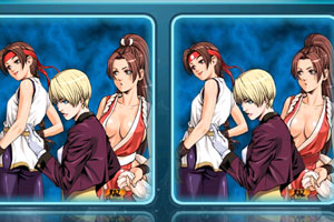 拳皇Neowave找茬。游戏共16关、每关均有5个不同处、每关时间均为100秒。在规定的时间内找出五个不同点即可开启下一关。误点一次时间扣8秒!