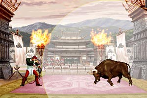 八神五段之斗牛小游戏介绍:游戏比较简单,但是容量稍大,控制八神或者大门躲开公牛的袭击,还要让上方的长矛刺中公牛,你能完成任务吗?