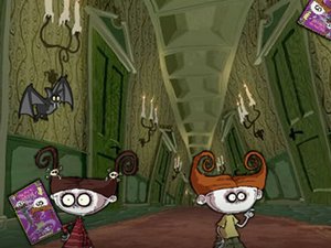 恐怖黑暗的城堡中,住着僵尸娃娃,话说这两只蝙蝠前生一定许过“在天愿做比翼鸟~”之类的愿望,所以今生只能一起飞,飞出城堡吧!