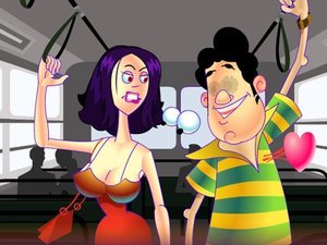 男人总是好色,无论在哪,只要身边有美女总忘不了偷窥美女,不过要小心,被美女发现了可是会被痛揍一顿的。