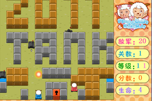 喜羊羊坦克大战小游戏介绍:灰太狼生产出了一批机器坦克,企图用这些坦克攻占羊村大门,小羊们只有驾驶坦克不惜一切守住羊村的大门……当击中敌军坦克时会随机出现坦克升级、敌方暂停、增加生命等奖励。
