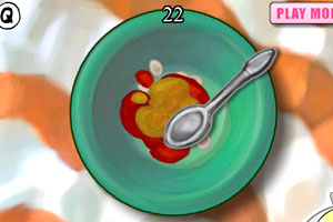 芭比娃娃又来教你做菜啦~~~这个比较复杂哦~可不是随随便便就是可以完成的,第一个难点在第二步加材料的过程是英文的,要记住英文和顺序,诀窍是记住每个英文的首个字母就容易了,第二个难点在上锅炒,从右边拖火、锅、油等东西,要按顺序,还要速度快,很难哦~看你能不能成功。