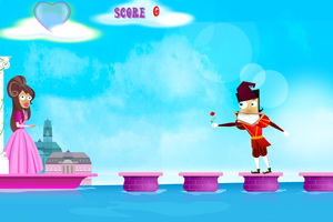 讨好公主小游戏介绍:这位绅士想要讨好他心仪的公主,必须将玫瑰花一朵一朵的送到对岸去,想要的到这位公主的芳心么,那就快来试试吧。