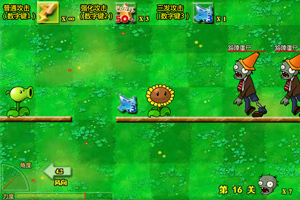 植物大战僵尸弹弹堂小游戏介绍:键盘方向键↑↓调整发射角度,空格键调整力度,数字键1:普通攻击;数字键2:强力攻击;数字键3:三叉攻击弹。