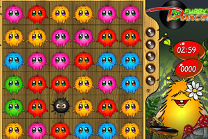 害羞小精灵小游戏介绍:在世界上有好多非常可爱的毛毛球。它们的情感丰富多彩。但它们太害羞,快来帮助它们吧,只要3个一样的颜色的小球,就可以再一起消除了。