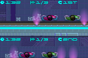 版的经典赛车游戏,游戏开始后场景可以分为两个主视角,让玩家能够单独操作,同时可以观察对方的进程~